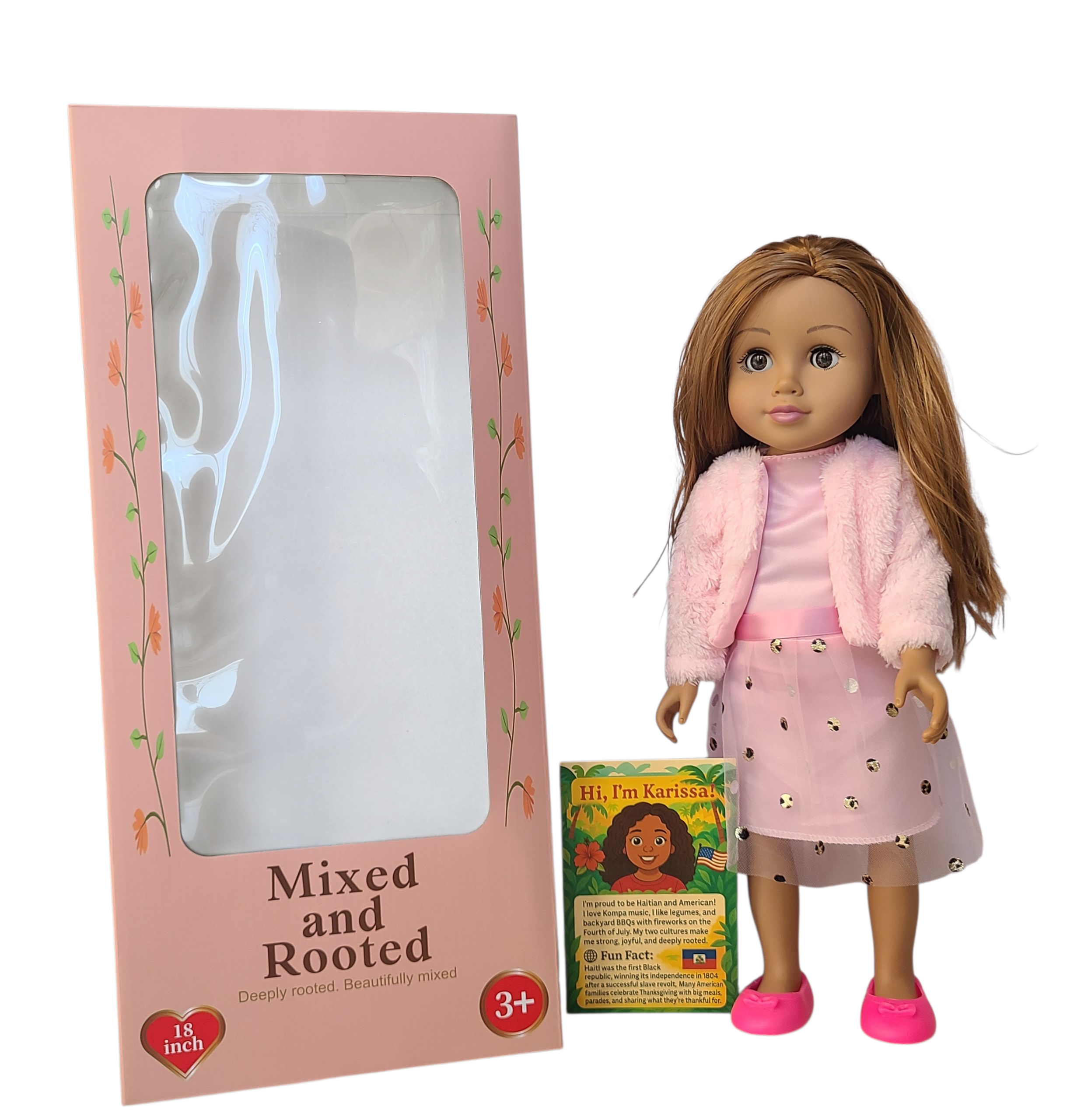 - Authentic Representation: 18-inch doll representing Karissa from the book: "Beautifully mixed and deeply rooted" now available on amazon. The Biracial, Haitian-American character that inspired this doll line.