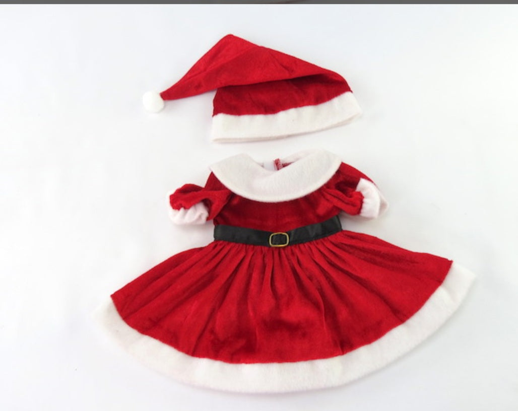 18" beautiful doll dressed in red and white Santa dress, paired with red boots and Santa gift bag. Included an extra red party outfit. This doll has soft body and durable vinyl legs, arms and face. Skin is light brown and has long brown hair. Eyes can blink. Bring the holiday cheers with this beautiful high quality doll.