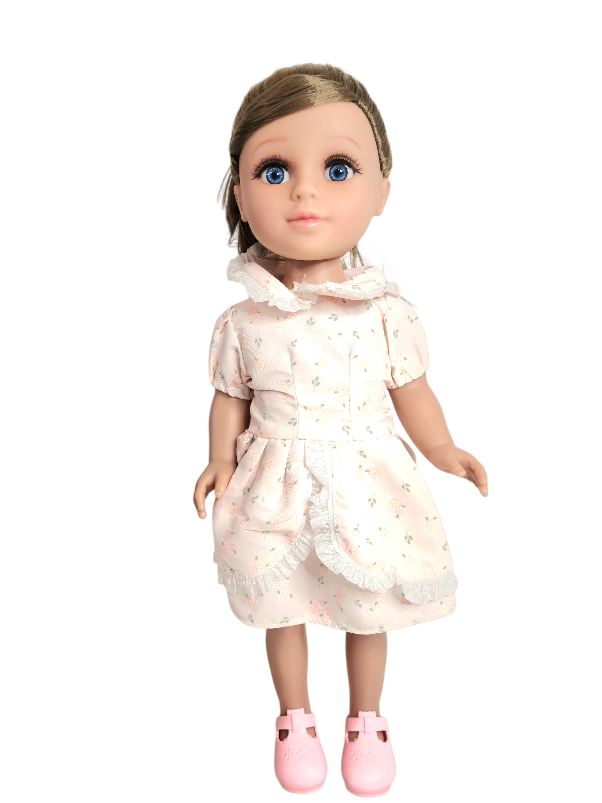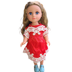 Holiday edition doll. 1 red outfit, 1 floral outfit and shoes included. Doll face and arms are made from vinyl and body + legs made durable plastic. This doll is part of our special value collection. This is a beautiful doll with pretty face, bright blue eyes and straight blonde hair.