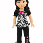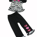 This triple heart’s outfit comes with a zebra print top with black leggings trimmed in zebra print.