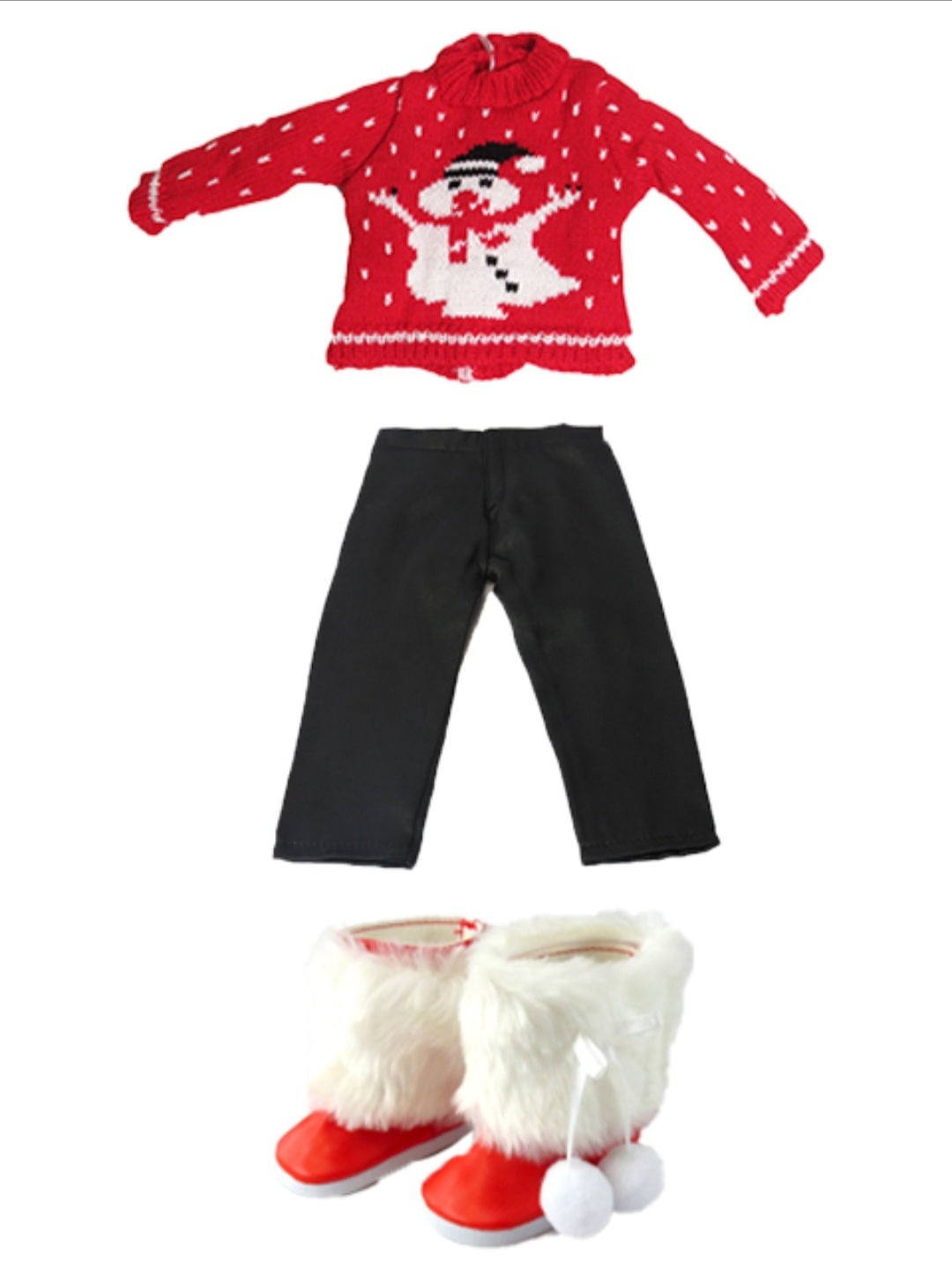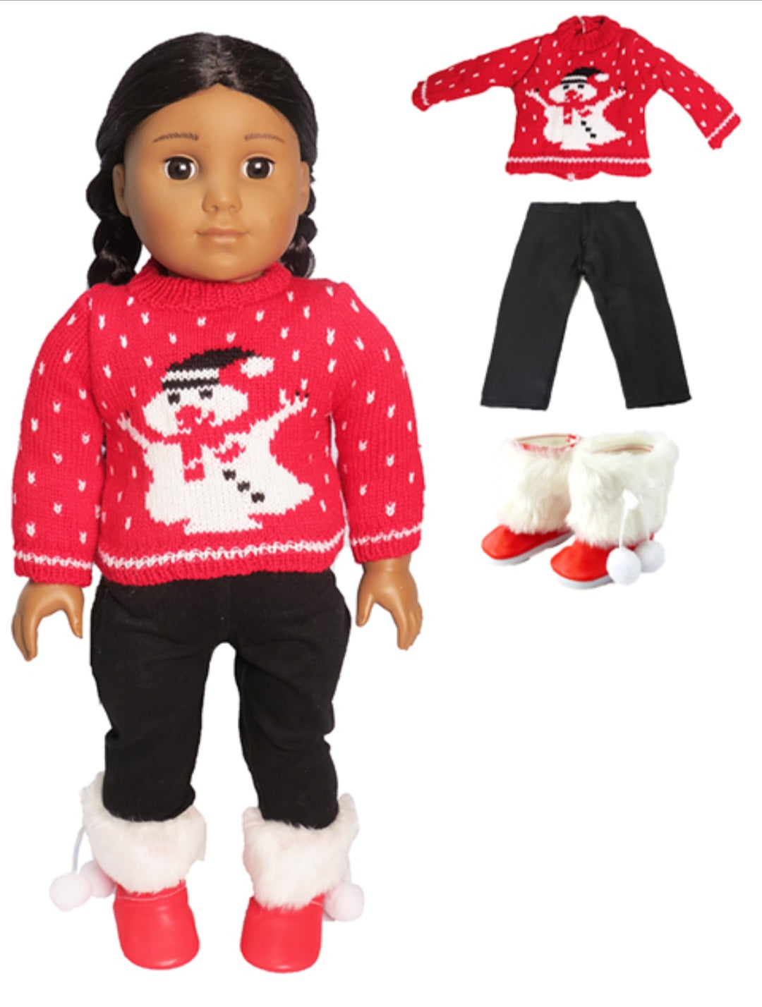 Includes a sweater, pants, and boots. Made to fot 18′ dolls. Doll is not included.