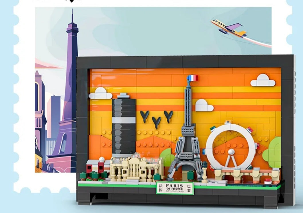 Paris Postcard small particles patchwork wall painting decoration building blocks.